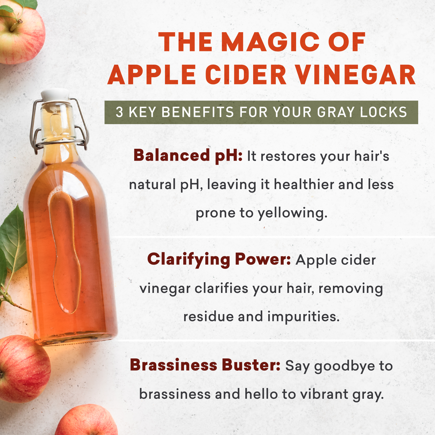 Our Vinegar Rinse Cleanser works to minimize the appearance of yellowing and brassiness often experienced with gray hair, while our specialized Gray Hair Shampoo is crafted to address any yellowing or brassiness that might affect your gray hair.