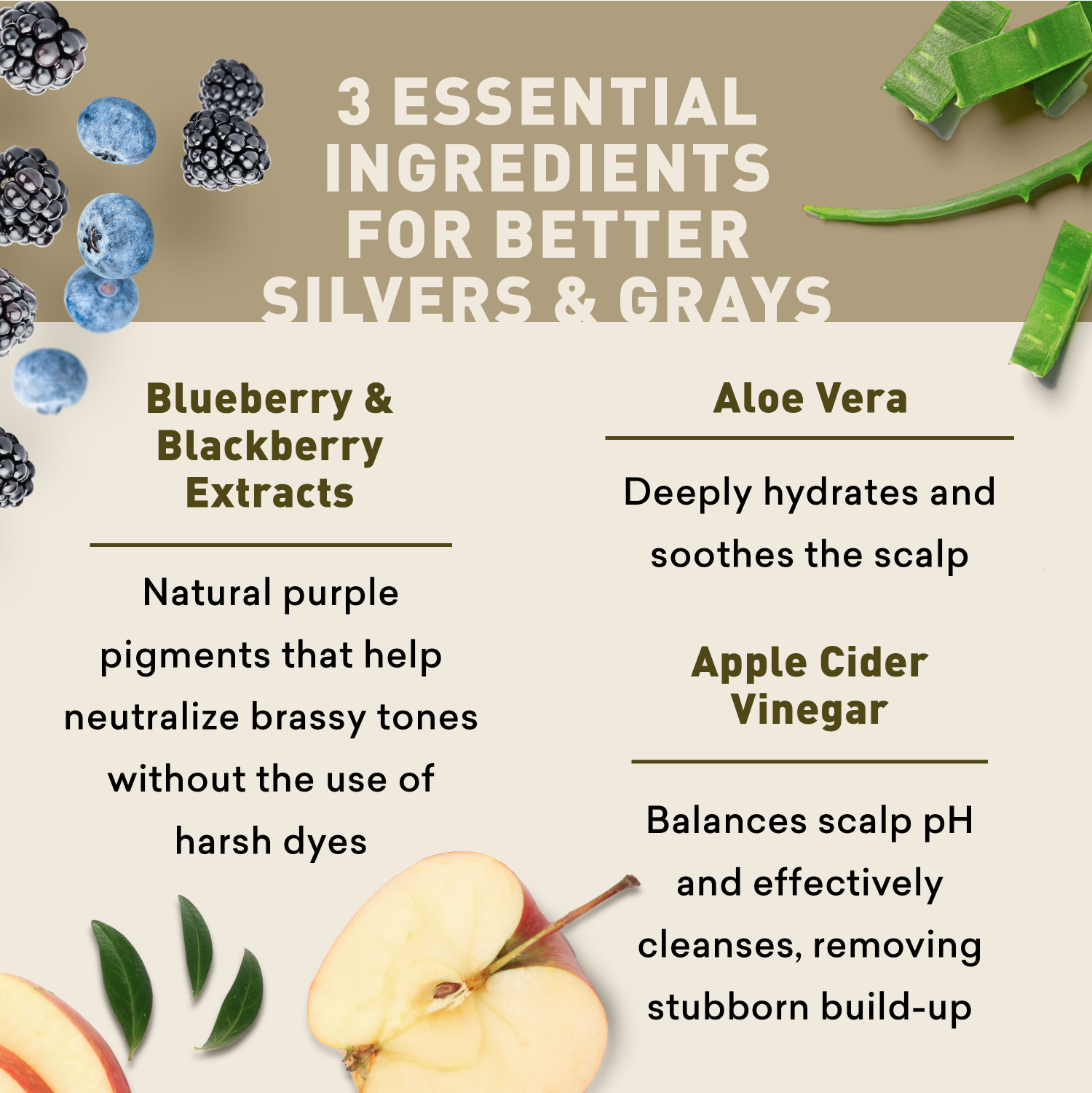• Complete Care System: Purple Toning Shampoo, Gray Hair Shampoo, and Vinegar Rinse Cleanser work together for vibrant, cool-toned silver hair.